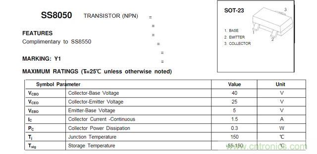 (1)我們先來看下SS8050的幾個(gè)基本參數(shù)