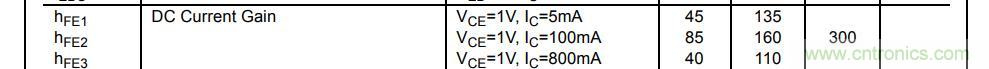 最大耐壓Vceo=25V,足夠應(yīng)用于5V供電系統(tǒng)中;最大集電極電流Ic=1.5A,足夠我們的LED燈使用。