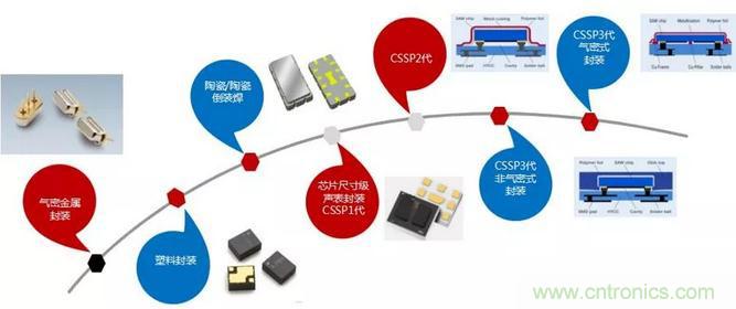 SAW器件封裝要求:(1)器件有源表面必須有一定空間;(2)襯底和封裝材料必須有良好的熱匹配;(3)防止?jié)駳饨撕臀⒘U次?。先后?jīng)歷過氣密金屬封裝、塑料封裝、陶瓷封裝、陶瓷倒裝焊、芯片尺寸級(jí)聲表封裝CSSP等幾個(gè)階段,針對(duì)不同的客戶需求和應(yīng)用場(chǎng)景這些封裝方案依然共存,但是器件的小型化是大勢(shì)所趨。