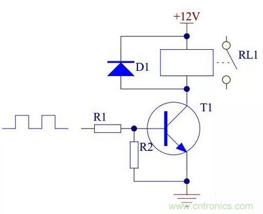 當晶體管用來驅(qū)動繼電器時,必須將晶體管的發(fā)射極接地。具體電路如下: