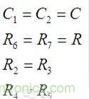 如果對(duì)電阻電容的值做一些限制,公式會(huì)變得更簡(jiǎn)單。設(shè):