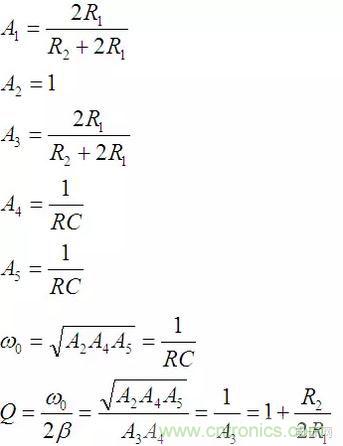 可以看出品質(zhì)因數(shù)Q只依賴于R1與R2的比值。而固有頻率只與RC的乘積有關(guān)。