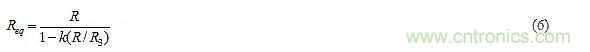 其中R2代表電位器在其左端和游標(biāo)之間的部分。對于給定的元件值,從左端到右端改變游標(biāo)將使k在0<k<2的范圍內(nèi)變化?,F(xiàn)在,R3上的電壓為(1+k)vn–vn,即kvn,在右邊是正的,表明R3將為C提供電流kvn/R3。鑒于R從C中汲取電流vn/R,因此從C流出的凈電流為iC=vn[1/R+1/(-R3/k)],表明C視R與一個負(fù)電阻–R3/k并聯(lián),凈等效電阻Req=R||(–R3/k)]。擴(kuò)展后可以得到: