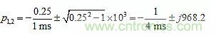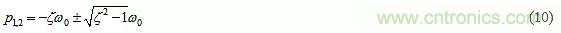 其中ζ稱為阻尼比,ω0稱為無阻尼固有頻率。設(shè)D(s)=0,可以得到極點(diǎn)對: