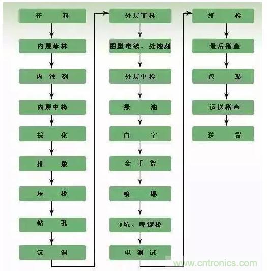 【導(dǎo)讀】PCB的產(chǎn)業(yè)鏈從上至下依次為:上游原材料—中游基材—下游PCB應(yīng)用,大多數(shù)工程師把PCB文件,或者gerber文件發(fā)給廠(chǎng)家之后,就可以等著回板了。但是往往硬件研發(fā)崗位工作很多年都沒(méi)有機(jī)會(huì)去PCB生產(chǎn)廠(chǎng)去看看整個(gè)生產(chǎn)的過(guò)程。今天小編帶你了解一下PCB加工的完整過(guò)程。