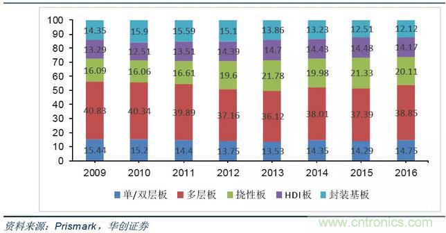 在計(jì)算機(jī)應(yīng)用領(lǐng)域,PCB產(chǎn)值占比由2009年的32%逐步下降至2016年的27%。主要由于計(jì)算機(jī)產(chǎn)業(yè)今年來(lái)增長(zhǎng)逐步放緩;