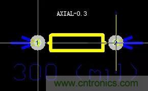 【導(dǎo)讀】直插式電阻封裝為AXIAL-xx形式(比如AXIAL-0.3、AXIAL-0.4),后面的xx代表焊盤中心間距為xx英寸,這個尺寸肯定比電阻本身要稍微大一點點。