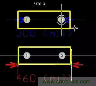 無極電容封裝以RAD標(biāo)識,有RAD-0.1、RAD-0.2、RAD-0.3、RAD-0.4,后面的數(shù)字表示焊盤中心孔間距,如下圖所示(示例RAD-0.3)