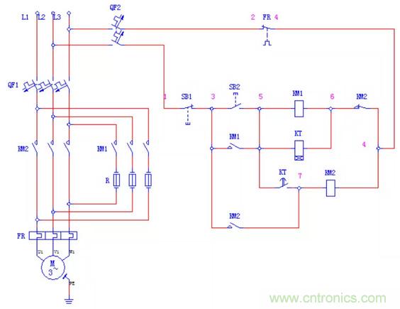 (4)停止。按下SB1→1KM、4KM失電釋放→電動機停轉(zhuǎn)。