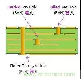 這個(gè)制作過(guò)程不能通過(guò)電路板黏合后再進(jìn)行鉆孔的方式達(dá)成,必須要在個(gè)別電路層的時(shí)候就進(jìn)行鉆孔操作,先局部黏合內(nèi)層之后進(jìn)行電鍍處理,最后全部黏合。由于操作過(guò)程比原來(lái)的導(dǎo)通孔和盲孔更費(fèi)勁,所以?xún)r(jià)格也是最貴的。這個(gè)制作過(guò)程通常只用于高密度的電路板,增加其他電路層的空間利用率。