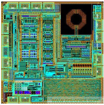 射頻無(wú)線模塊或者獨(dú)立的射頻芯片,從電路設(shè)計(jì)到版圖設(shè)計(jì),完全屬于全定制設(shè)計(jì)方式。設(shè)計(jì)人員在標(biāo)準(zhǔn)版圖設(shè)計(jì)和半定制版圖設(shè)計(jì)的基礎(chǔ)上,不斷開發(fā)出專用的芯片射頻產(chǎn)品。圖6為某射頻公司自行設(shè)計(jì)的5GHz通信產(chǎn)品全定制版圖案例,即版圖為全手工設(shè)計(jì),芯片制造采用180nm射頻工藝,其數(shù)據(jù)率達(dá)到5Gbps。
