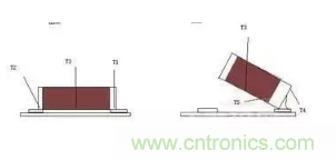 當(dāng)貼片時(shí),由于焊墊的不平或焊膏的滑動(dòng),造成片感偏移了θ角。由于焊墊熔融時(shí)產(chǎn)生的潤濕力,可能形成以上三種情況,其中自行歸正為主,但有時(shí)會(huì)出現(xiàn)拉的更斜,或者單點(diǎn)拉正的情況,片感被拉到一個(gè)焊盤上,甚至被拉起來,斜立或直立(立碑現(xiàn)象)。目前帶θ角偏移視覺檢測的貼片機(jī)可減少此類失效的發(fā)生。