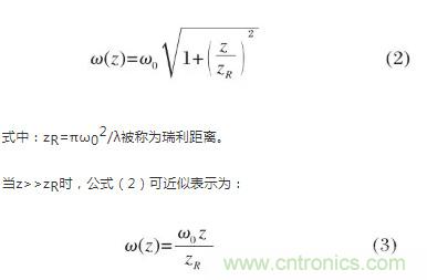 對于給定波長λ的LD,其腰斑半徑在z軸方向上的分布滿足: