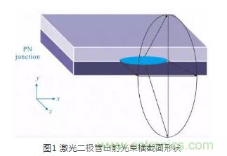 LD光束橫截面示意圖如圖1所示,光束在快軸(垂直于結(jié)平面)和慢軸(平行于結(jié)平面)方向以不同束散角出射,其橫截面近似為橢圓形。