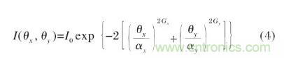 式中:I0為z軸上光強(qiáng);θx和θy分別是光束與x-z面和y-z面夾角;αx和αy分別為x和y方向上高斯強(qiáng)度1/e2點(diǎn)的遠(yuǎn)場束散角;Gx和Gy分別是x和y方向上的“超級高斯因子”,其值為1時,是典型的高斯分布。對于實(shí)際LD,其快軸和慢軸方向上的超高斯因子Gx和Gy均大于1,表征實(shí)際輸出的激光束中除基模外還包含其他的高階模分量。