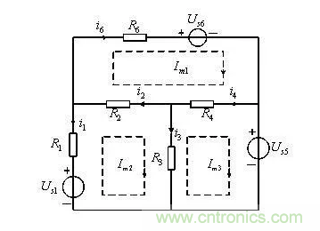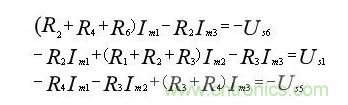 即為該電路的網(wǎng)孔方程,顯然,由此三個(gè)方程,可求解網(wǎng)孔電流。