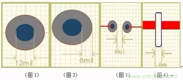 2、最小過孔(VIA)孔徑不小于0.3mm(12mil),焊盤單邊不能小于6mil(0.153mm),最好大于8mil(0.2mm) 大則不限(見圖3)此點(diǎn)非常重要,設(shè)計(jì)一定要考慮。
