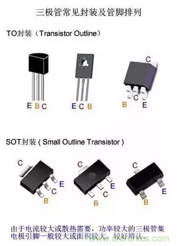 當(dāng)前,塑料封裝是三極管的主流封裝形式,其中“TO”和“SOT”形式封裝最為常見。