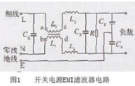 開關(guān)電源電磁干擾濾波器是無(wú)源網(wǎng)絡(luò),它具有雙向抑制性能。將它插入在交流電網(wǎng)中與電源之間,相當(dāng)于這二者的EMI 噪聲之間加上一個(gè)阻斷屏障,這樣一個(gè)簡(jiǎn)單的無(wú)源濾波器起到了雙向抑制噪聲的作用,從而在各種電子設(shè)備中獲得廣泛的應(yīng)用。