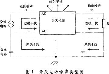 在開關(guān)電源中,主功率開關(guān)管在高電壓、大電流或以高頻開關(guān)方式工作下,開關(guān)電壓及開關(guān)電流的波形在阻性負(fù)載時(shí)近似為方波,其中含有豐富的高次諧波分量。由于電壓差可以產(chǎn)生電場、電流的流動(dòng)可以產(chǎn)生磁場,以及豐富的諧波電壓電流的高頻部分在設(shè)備內(nèi)部產(chǎn)生電磁場,從而造成設(shè)備內(nèi)部工作的不穩(wěn)定,使設(shè)備的性能降低。同時(shí),由于電源變壓器的漏電感及分布電容,以及主功率開關(guān)器件的工作狀態(tài)非理想,在高頻開或關(guān)時(shí),常常產(chǎn)生高頻高壓的尖峰諧波振蕩,該諧波振蕩產(chǎn)生的高次諧波,通過開關(guān)管與散熱器問的分布電容傳人內(nèi)部電路或通過散熱器及變壓器向空間輻射。