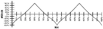 對(duì)EMI減弱的調(diào)制波形的整形是很關(guān)鍵的。調(diào)制的方案用來(lái)實(shí)現(xiàn)最大減小EMI,如圖4所示。調(diào)制周期在X軸上以周期長(zhǎng)度的百分比為單位。Y軸表示不同的頻率值,也是以總擴(kuò)展頻率的百分比為單位。