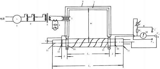 按下圖裝置,測(cè)試電纜金屬護(hù)套及鎧裝層的理想屏蔽系數(shù)γ0s=VC/VS(線芯上的感應(yīng)電壓mV;電纜式樣金屬套上的縱向干擾電壓mV)。