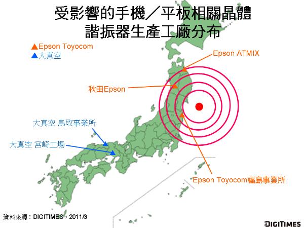 Epson Toyocom位于福島縣南相馬市的福島事務(wù)所更因廠房位于福島第1核電廠直徑16公里內(nèi),工廠作業(yè)停擺,復(fù)工時程無法估計。