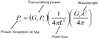 從幾個(gè)要素中,我們發(fā)現(xiàn)UHF頻段的讀寫(xiě)距離在4~5米,從經(jīng)典的無(wú)線傳輸模型公式(1)中