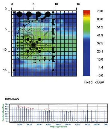 在任何新PCB的開(kāi)發(fā)過(guò)程中,設(shè)計(jì)工程師都必須找出設(shè)計(jì)之外的輻射體或射頻泄漏,并對(duì)其進(jìn)行描述和處理以通過(guò)一致性測(cè)試。可能的輻射體包括高速、大功率器件以及具有高密度或高復(fù)雜度的器件。掃描系統(tǒng)以疊加在Gerber文件上的形式顯示空間輻射特性,因此測(cè)試人員可以準(zhǔn)確地找出所有輻射問(wèn)題的來(lái)源。設(shè)計(jì)工程師可以在采取了相應(yīng)的解決措施之后,對(duì)器件進(jìn)行重新測(cè)試并立即量化出校正設(shè)計(jì)后的效果。