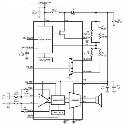 LM48511是一個擴(kuò)頻調(diào)制式D類音頻放大器,內(nèi)部集成了一個內(nèi)置式升壓穩(wěn)壓器,可把電壓提升至7V,從而增強(qiáng)放大器的輸出功率和音頻聲壓級。此外,該升壓穩(wěn)壓器即使在電池衰減的情況下也可使放大器維持一個固定的輸出水平。