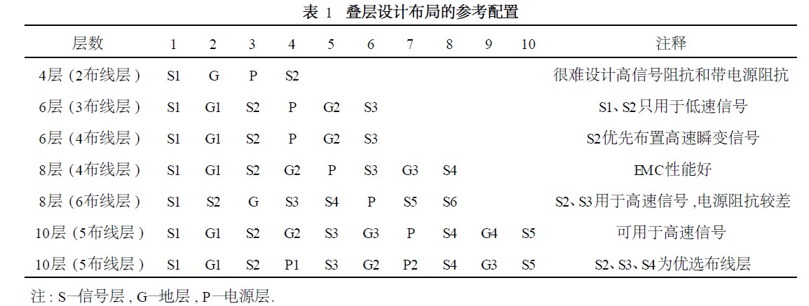 如果第2層分配為“地”,且第4層分配為處理器的電源,則過孔距離放置處理器和去耦電容器的頂層應(yīng)該盡可能短。延伸到板的底層的過空剩余部分不包含任何重要的電流,而且距離短不會(huì)具有天線作用。表1列出了疊層設(shè)計(jì)布局的參考配置。
