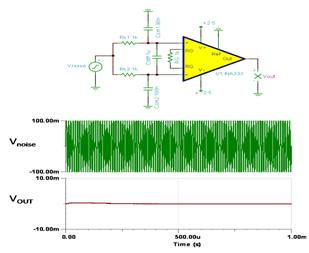 圖 7 INA333 使用 Cdiff 時獲得改善的噪聲濾波仿真情況