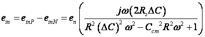 這種輸入不匹配 (?C) 形成截止頻率誤差,使共模噪聲 eN 差動進入 INA 輸入,之后被增益輸出,成為誤差電壓。方程式 1-3 顯示了到達輸入端的共模噪聲量: