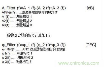 一旦完成這三項測量,我們就能夠用測量結(jié)果來計算ANC濾波器的理想值。所需的濾波器振幅計算如下: