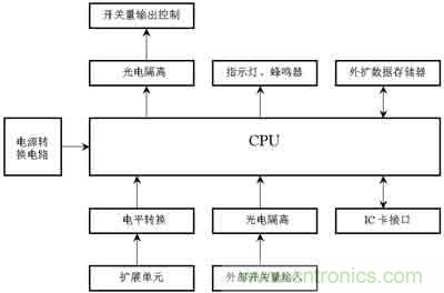 圖1為汽車行駛記錄儀硬件結構原理。信號的抗干擾處理是通過光電隔離來實現(xiàn)。車載設備的電源系統(tǒng)對設備的可靠運行影響很大,好的電源電路能夠過濾掉許多通過電源線傳入的干擾信號。