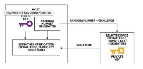 圖2. 非對稱密鑰安全認(rèn)證依賴于公鑰和私鑰。