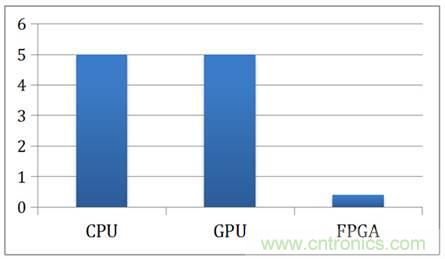 FPGA相對于CPU與GPU有明顯的能耗優(yōu)勢,主要有兩個原因。首先,在FPGA中沒有Instruction Fetch與Instruction Decode,在Intel的CPU里面,由于使用的是CISC架構(gòu),僅僅Decoder就占整個芯片能耗的50%;在GPU里面,F(xiàn)etch與Decode也消耗了10%~20%的能源。其次,F(xiàn)PGA的主頻比CPU與GPU低很多,通常CPU與GPU都在1GHz到3GHz之間,而FPGA的主頻一般在500MHz以下。如此大的頻率差使得FPGA消耗的能源遠低于CPU與GPU。