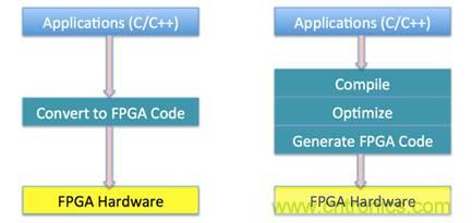 圖4 傳統(tǒng)FPGA開發(fā)流程與C-to-FPGA開發(fā)流程