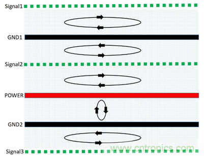 PCB疊層EMC規(guī)劃與設(shè)計思路的核心就是合理規(guī)劃信號回流路徑,盡可能減小信號從單板鏡像層的回流面積,使得磁通對消或最小化。