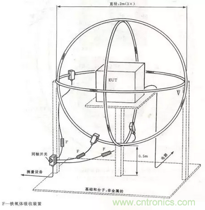 在9KHz~30MHz頻率段,測量騷擾的磁場強度。如果EUT較小,則將其放在大磁環(huán)天線(LLA)中,測量騷擾磁場的感應電流。如果EUT較大,則采用遠天線法,用單小環(huán)在規(guī)定距離測量騷擾的磁場強度。