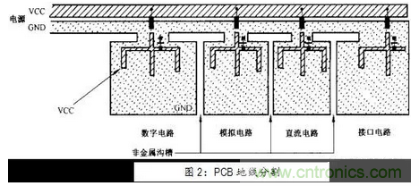 分割是指用物理上的分割來減少不同類型線之間的耦合,尤其是通過電源線和地線的耦合。