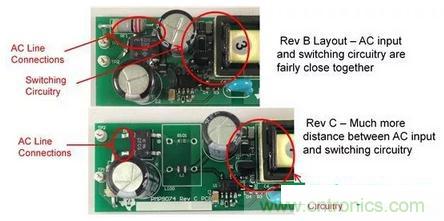 您是否有過在顯著加強輸入濾波器后 EMI 改善效果很小甚至沒有改善的這種遭遇?這很有可能是因為有一些來自某個高 dV/dt 節(jié)點的雜散電容直接耦合到輸入線路,有效繞過了您的 CMC。為了檢測這種情況,可臨時短路 PCB 上 CMC 的繞組,并將一個二級 CMC 與電路板的輸入電線串聯。如果有明顯改善,您需要重新布局電路板,并格外注意輸入連接的布局與布線。