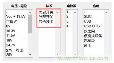 你可以訪問Digi-Key浪涌抑制IC,選擇相關(guān)的器件。Digi-Key網(wǎng)站提供豐富的參數(shù)選項供選擇,下圖中「外部開關(guān)」指的是器件外部需要另加開關(guān)(比如MOS管),而該芯片一般是起到控制作用。而「內(nèi)部開關(guān)」指的是保護(hù)電路的開關(guān)在芯片的內(nèi)部。
