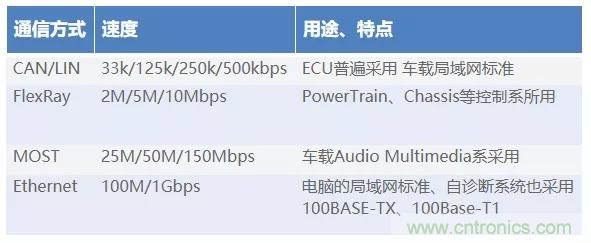 汽車內(nèi)部根據(jù)用途使用各種不同的接口標(biāo)準(zhǔn)。