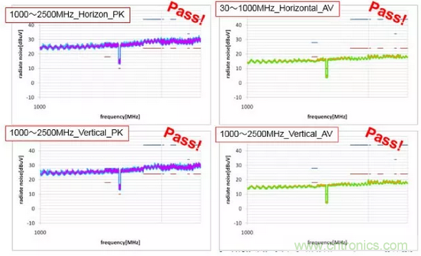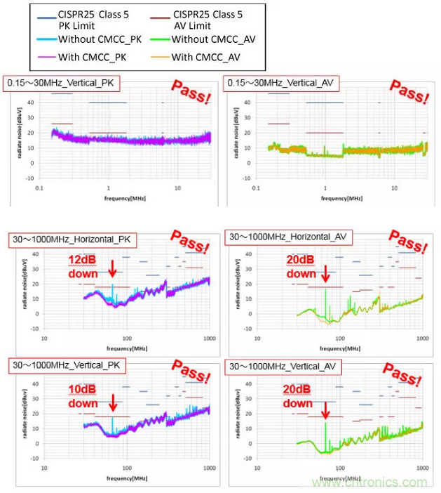 使用支持100Base-T1的共模扼流圈‘DLW43MH201XK2’,輻射噪聲便能符合CISPR25 Class5。