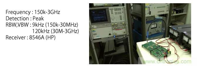 通過輻射噪聲測定確認(rèn)了共模扼流圈的降噪效果。