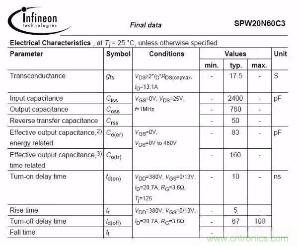 參照以上兩圖,是不同型號(hào)的MOS管,對(duì)比下輸入結(jié)電容和輸出結(jié)電容,2400PF與800PF;780PF與2200PF;一看就知道第一個(gè)規(guī)格是快管,第二個(gè)是慢管,這時(shí)候決定開(kāi)關(guān)速度還要與驅(qū)動(dòng)電阻匹配;常規(guī)情況驅(qū)動(dòng)電阻在10R-150R比較多,選取驅(qū)動(dòng)電阻與結(jié)電容有關(guān),針對(duì)快板驅(qū)動(dòng)電阻可適當(dāng)增大,慢管驅(qū)動(dòng)電阻可適當(dāng)減小;