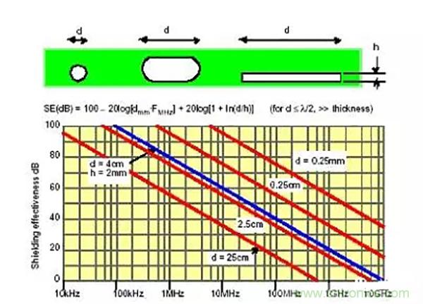 b、避免開細(xì)長孔,通風(fēng)孔盡量采用圓孔并陣列排放。屏蔽和散熱有矛盾時盡可能開小孔,多開孔,避免開大孔;