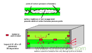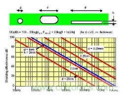 d、屏蔽體的電連續(xù)性是影響結(jié)構(gòu)件屏蔽效能最主要的因素,相對而言,一般材料本身屏蔽性能以及材料厚度的影響是微不足道的(低頻磁場例外);