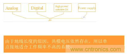 d、接地:同類電路單獨分布地,在單板上單點相連